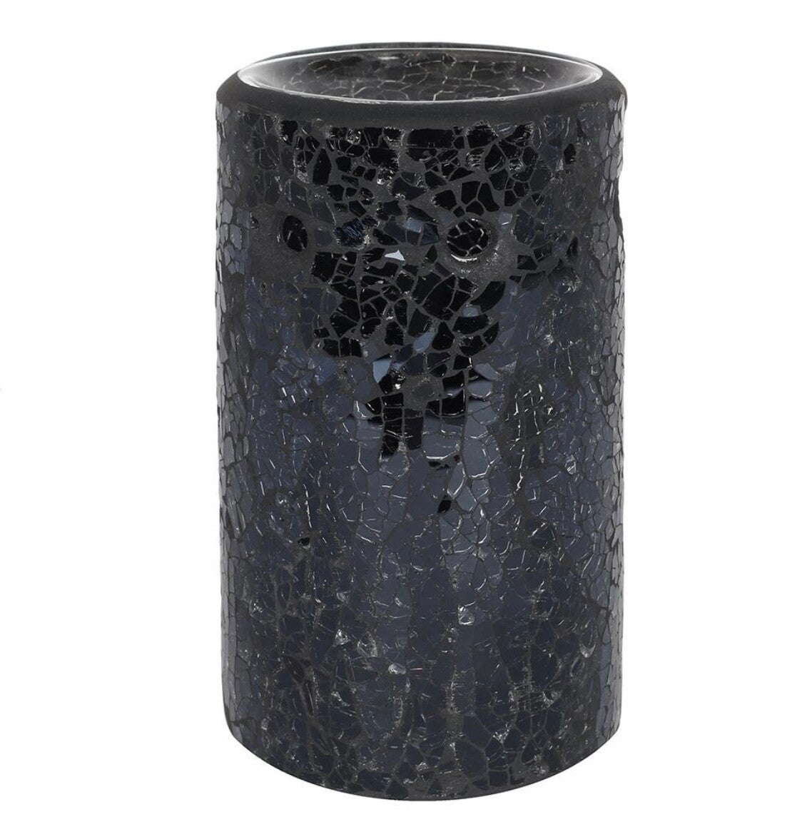 Stunning pillar shaped oil burner with a black mirrored crackle effect. Would look beautiful in any home. This item can also be used as a wax melt burner however it is advisable to consider the size and depth of the bowl when adding wax to ensure it will not overrun the edges when melted.
